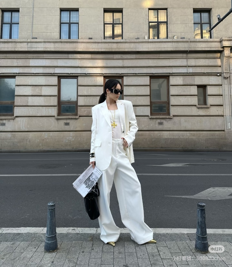 ▲當色彩退居幕後時,服裝的剪裁與線條自然會成為造型的重心。圖片來源:小紅書 @你的陈雨姣