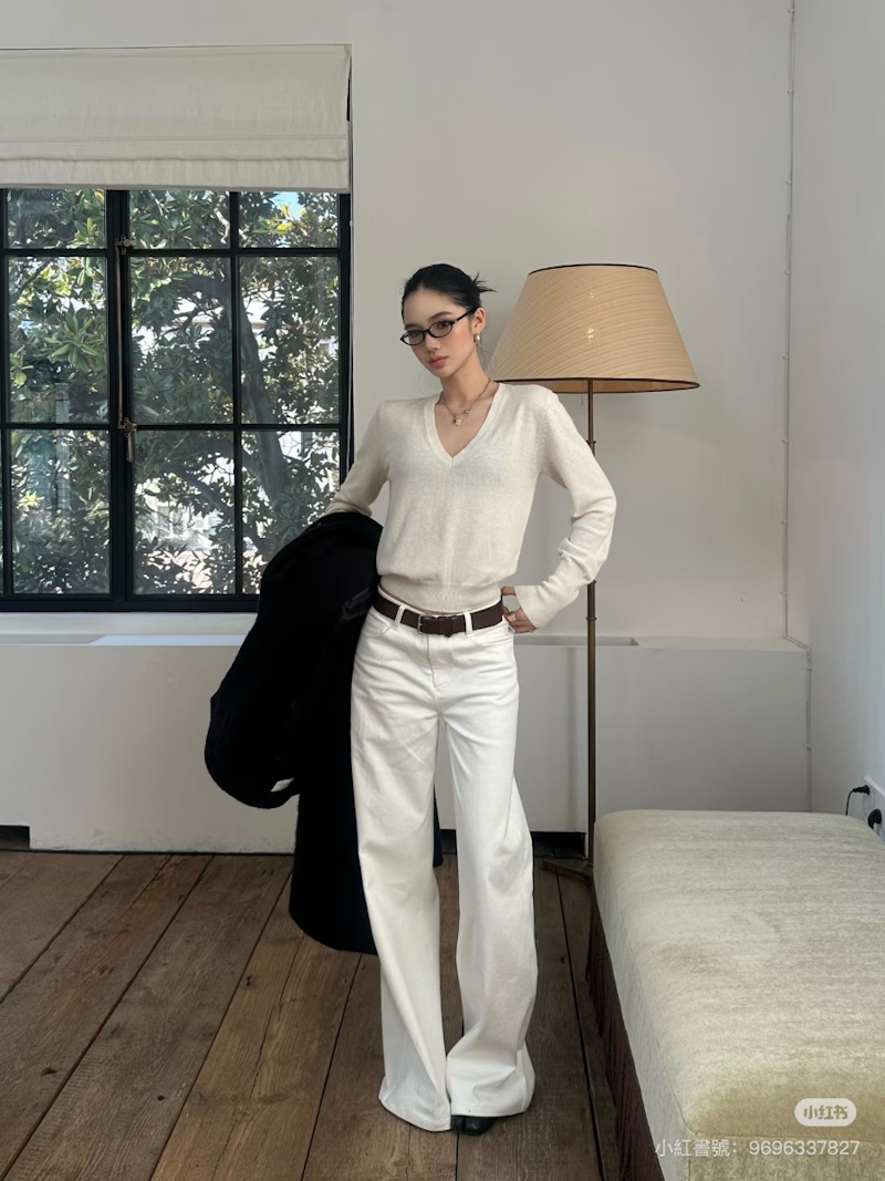 高級感往往都藏在層次之間的細微變化裡!以雲舞白作為基底時,可以適度揉合燕麥色、奶油色或是米白色的單品,讓造型不再是百分之百的純白;這樣的配色思路,正是透過色彩飽和度與色溫上的細微差異,營造出自然視覺流動感的關鍵。相較於單一色塊的平鋪,這種帶有漸層感的白色系搭配,更能讓造型顯得有溫度、好親近,同時還能修飾膚色,在低調中展現出帶有「老錢風」氣息的細緻質感,使整體穿搭變得更加耐看。