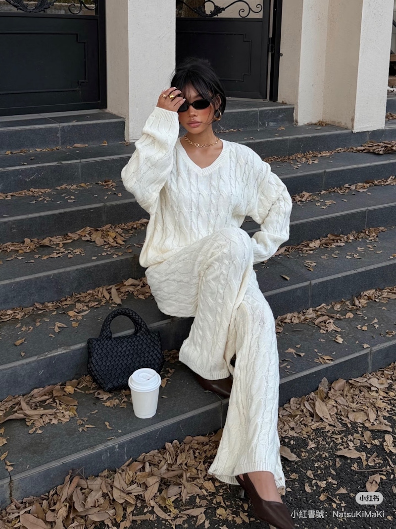 ▲針織材質和雲舞白本來就相當契合,能夠輕鬆營造出柔和的氛圍感。圖片來源:小紅書 @三金 x