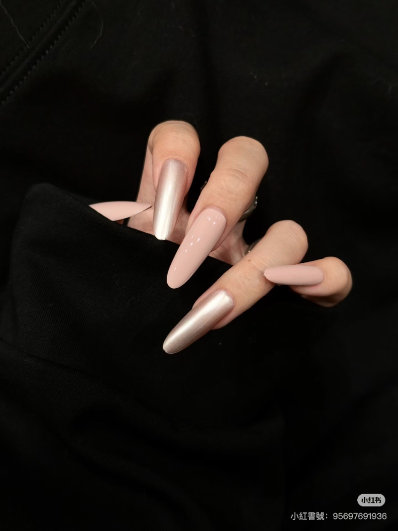 ▲這款美甲將粉色的柔和氣息與鏡面質感的高級光澤自然結合。圖片來源:小紅書 @Y.J Time