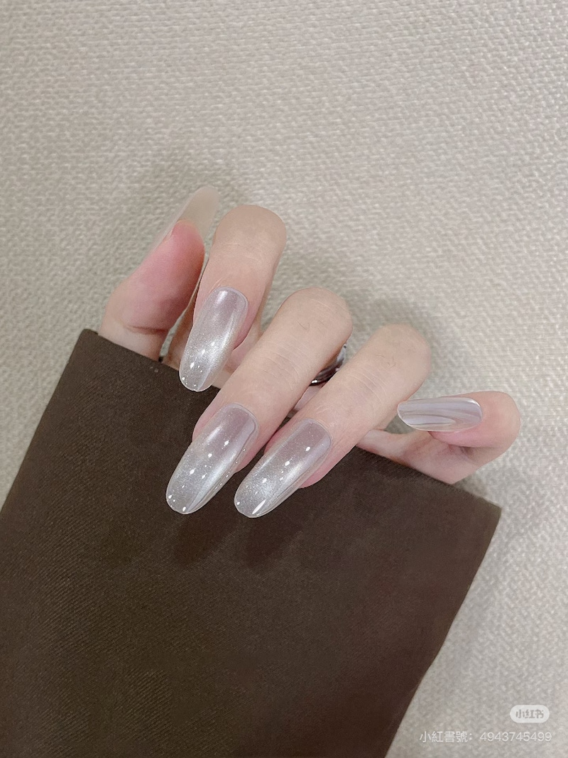 ▲白色貓眼鏡面美甲是將極簡美學與藝術氣息完美融合的優雅詮釋。圖片來源:小紅書 @井小七