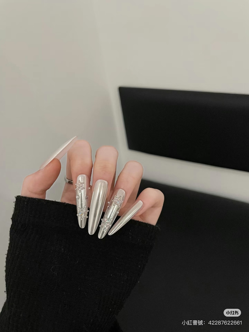 ▲銀色雪花鏡面美甲以冬日氛圍為靈感。圖片來源:小紅書 @我不是盐盐