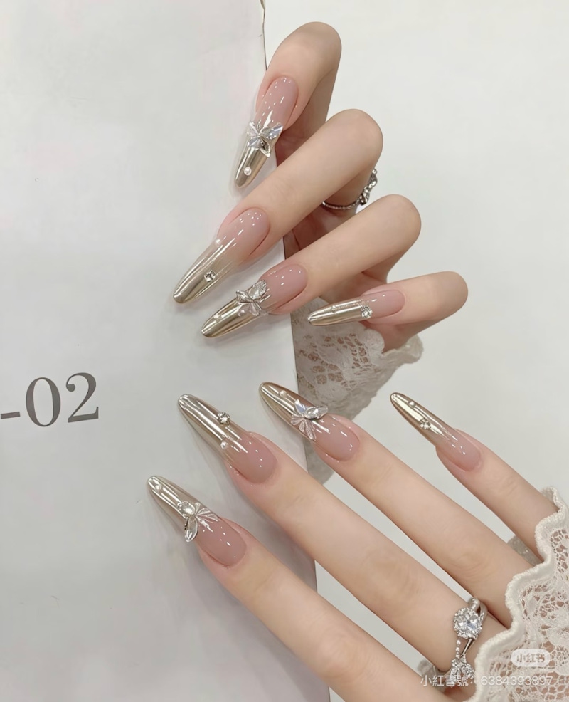 ▲香檳色法式鏡面美甲散發出優雅又內斂的名媛氣息。圖片來源:小紅書 @Bella Naillash