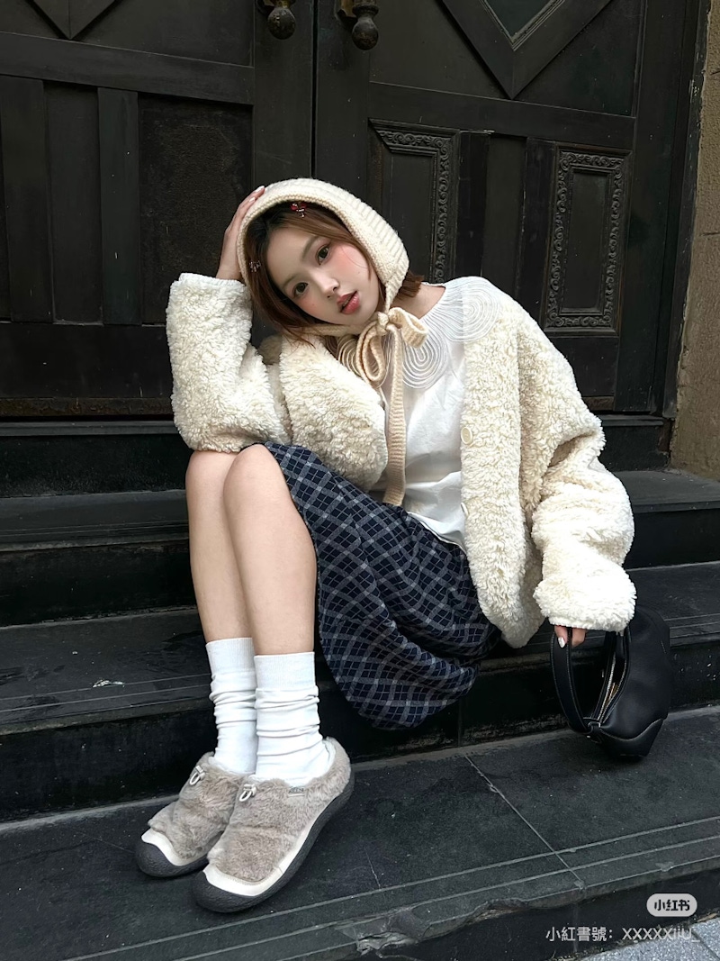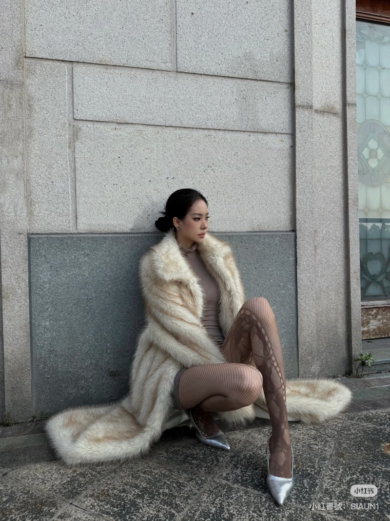 ▲即使氣溫再低,毛毛外套也能讓造型看起來既時尚又有質感。圖片來源:小紅書 @陈思禾 CSH