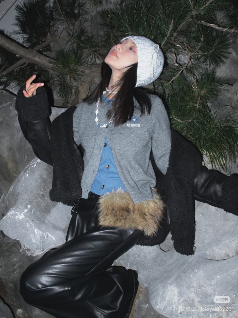 毛毛短裙在冬季造型中,主要負責補足下半身的份量感。絨毛材質本身就具備一定的厚度,不會過於輕薄,所以即使是短版設計,也能維持相對穩定的輪廓線條;搭配長筒襪、平底鞋時,絨毛材質還能減少腿部與下半身之間的視覺斷點,使整體比例看起來更加一致。與皮革、麂皮等較為硬挺的布料相比,毛毛短裙的質感會顯得更加柔和,可以在保持造型俐落感的同時,為穿搭注入一點溫柔、可愛的氣息。