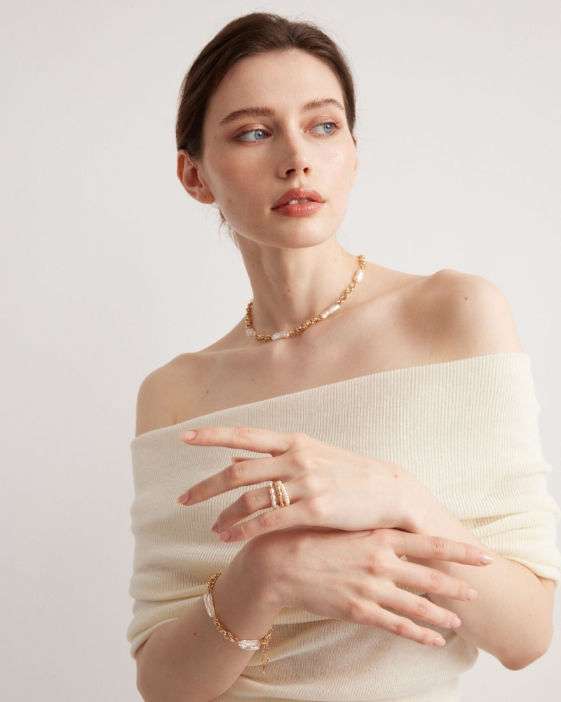 戒指的佩戴位置本身就具備修正視覺比例的效果。戴在食指時,能夠展現較強的存在感與俐落度;放在中指位置,則有穩定視覺重心、拉長手指線條的作用。而近幾年受到關注的「關節戒」,會戴在第一、第二指節之間,能夠打破傳統戒指集中在指根的單調感,為造型增添時髦層次。只要透過不同指節位置的靈活配置,就可以細微調整手部的視覺長度與寬度,達到自然修飾手型的效果。