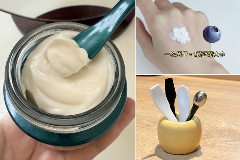 晚霜用足夠用量才有效果,大約掌握在「1顆藍莓」大小,以指腹均勻點在臉上再抹開,塗抹起來更均勻;提醒晚霜最好用挖杓來挖取,避免手指細菌進入瓶中;挖杓老是離家出走?可以參考網友的方法,使用「牙刷架」來收納。