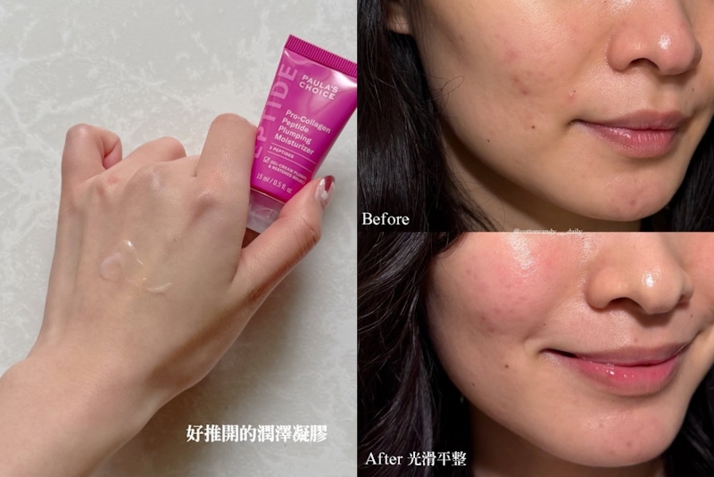 網友「芸朵糖」分享,「高效胜肽膠原緊緻霜」無油凝膠質地吸收迅速,保養後肌膚保濕潤澤感充足:「當作晚間保養最後一步,或是隔天的妝前保濕打底,都十分合適!」 連續用7天用下來,臉部狀態緊緻有光澤,為肌膚撐起彈潤感!