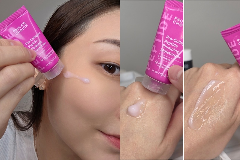 網友「蘿拉」本身膚質偏乾,他會先用保濕精華,再疊擦「高效胜肽膠原緊緻霜」來加強鎖水;他說:「質地是淡粉色凝霜狀,非常好推好吸收,延展度也很好,使用起來很輕盈,不會有厚重黏膩感。」保養後肌膚摸起來水潤柔軟,後續妝容也會比較服貼。