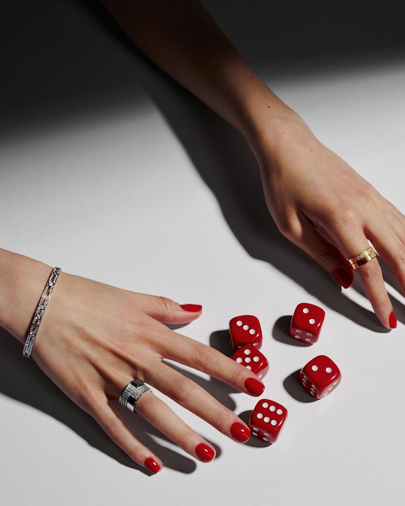紅色甲面柔和的過渡層次,搭配細緻的珠光細閃,在不同的光線下會呈現出細膩又自然的漸變效果。這樣的設計可以有效降低紅色原有的高彩度張力,讓整體氛圍變得溫柔、內斂,同時還帶有一點神祕的氣息。由於色彩的邊界已被柔化,因此不僅能夠修飾手部膚色、具備顯白效果,還能減少指甲生長後產生的明顯落差,在耐看與實用之間取得了完美的平衡,是非常值得一試的新年美甲選擇。