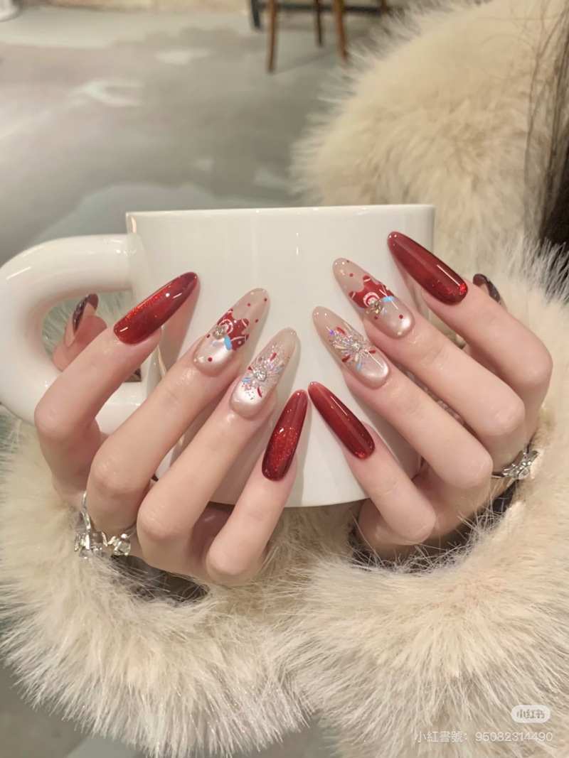 ▲新年的美甲設計多半圍繞著喜慶、吉祥與新開始的意象。圖片來源:小紅書 @时尚的眼光