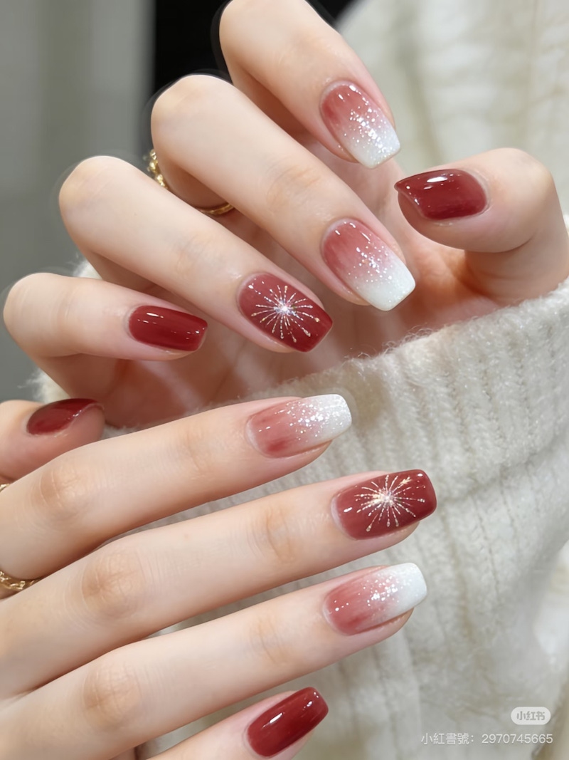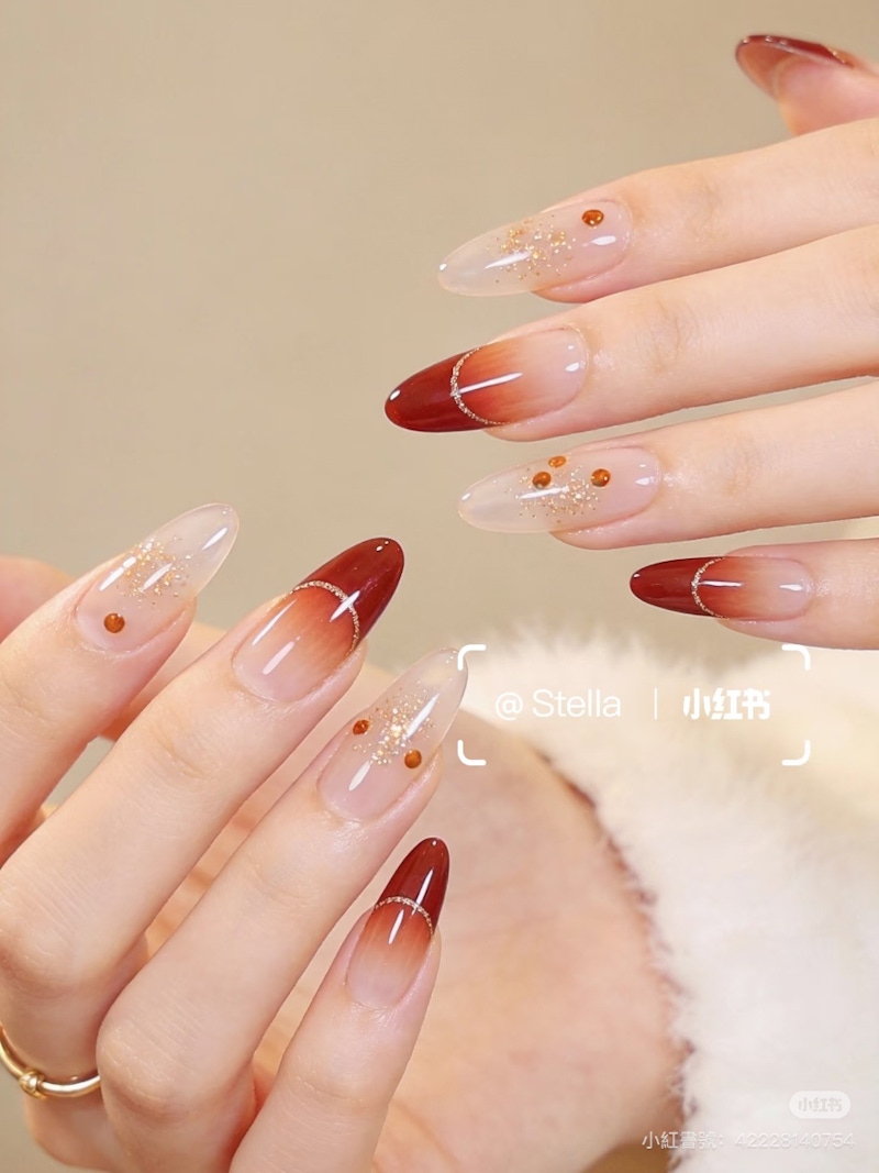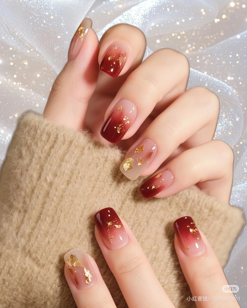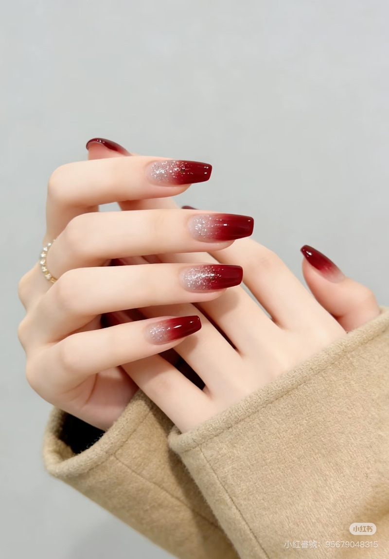 ▲紅色漸層細閃美甲是非常值得一試的新年美甲選擇。圖片來源:小紅書 @爱美甲的小菇凉
