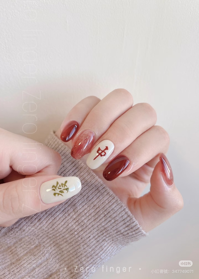 「麻將」是農曆新年最具代表性的娛樂之一,將這個標誌性的元素融入美甲設計之中,自然會帶有濃厚的年節氛圍與開運意涵。以紅、白兩色為底,再用紅色與綠色的線條勾勒出「發」、「中」等麻將中的文字,能夠傳達出「發財」、「命中」這樣的吉祥暗示,既幽默又不失精緻感。這類型的美甲款式風格鮮明、記憶點極高,特別適合新年期間,不僅可以展現個人的獨特品味,也能將自己對新一年「手氣順、財運穩」的期待,全都寄託在指尖上!
