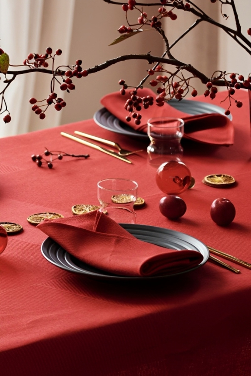 餐桌是過年期間最重要的社交場景。更換紅色的桌布、搭配金色的餐具墊與紅色紙巾,都能夠快速建立過年圍爐的氛圍。在佈置餐桌時,應該要儘量維持動線的流暢,不建議使用太高、過雜的中心擺飾影響視線交流。餐桌布的質地與色彩對應,能讓普通的家常飯轉化成具有年味與正式感的年夜大餐,透過環境氛圍的營造,提升家人之間的情感連結。