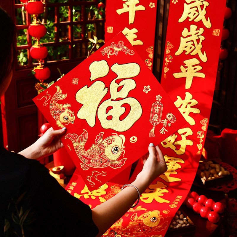 春聯是春節佈置中,最具代表性的靈魂元素。鮮紅色的底色配上墨黑色或是金色的文字,具備強烈的避邪求福寓意;而在現代的居家環境中,除了傳統的對聯,簡約設計的手寫體以及插畫風格的小方春聯也非常受歡迎。將春聯貼在大門或是特定的牆面上,能夠瞬間提升整體的節慶氛圍,這種從玄關就開始的視覺定位,絕對是引導好運入宅的第一步!