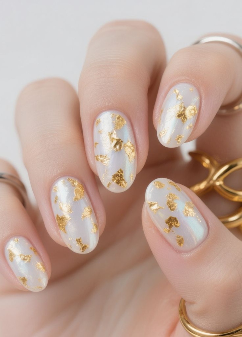 ▲金箔美甲透過不規則薄片的點綴,在甲面上形成立體又多變的光影層次。圖片來源:Pinterest