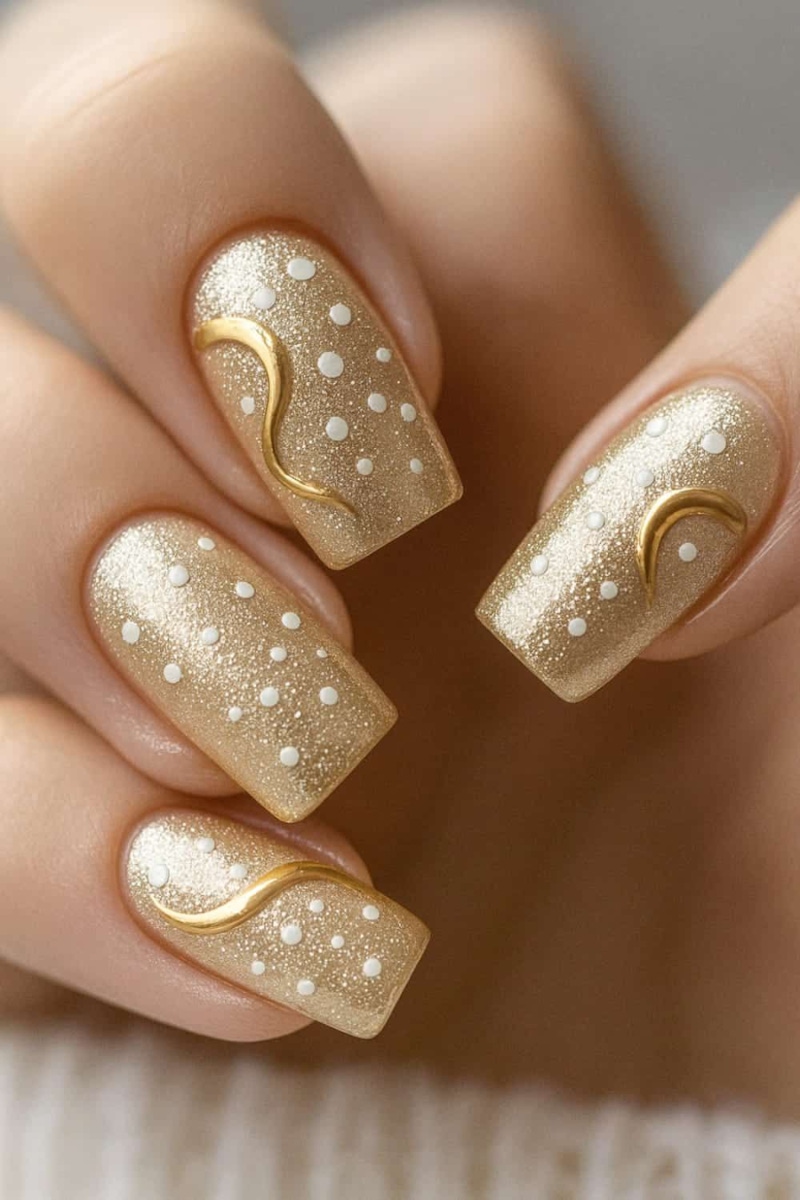 金色細閃美甲將細緻的珠光質地放上甲面,呈現出如同星砂一般柔和、內斂的光澤感。這樣的美甲設計不追求強烈的反射,而是讓指甲在不同光線的照射下,呈現出低調、耐看的層次亮度,細膩又不張揚;而且細閃的質感還能自然的柔化甲面細節,同時襯托手部的氣色,讓膚色看起來更加溫潤。金色細閃美甲既溫柔又具有高度的親和力,能夠輕鬆的融入各種社交場合之中,在不刻意張揚的情況下,展現對生活質感與細節的用心。