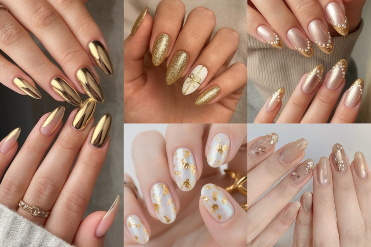 金色美甲一直是過年期間非常熱門又討喜的指彩款式。金色象徵財富、繁榮與好運,與新年所傳遞的祝福意涵高度契合,能夠自然的流露出對來年順遂與富足的期待。與經典的純紅色相比,金色多了一份輕盈、現代的氣息,既可以保留節慶的正式度,又不會顯得老氣。亮金、細閃、霧面等不同質地的金色,都能呈現出各自的風格,並與紅色、珍珠等元素搭配出喜慶卻不浮誇的效果。不管是與哪一種甲型組合,金色都能展現出內斂的高級感,在走春、拜年等聚會場合中更能顯得得體、有品味,成為過年最不容易出錯的美甲選擇之一。