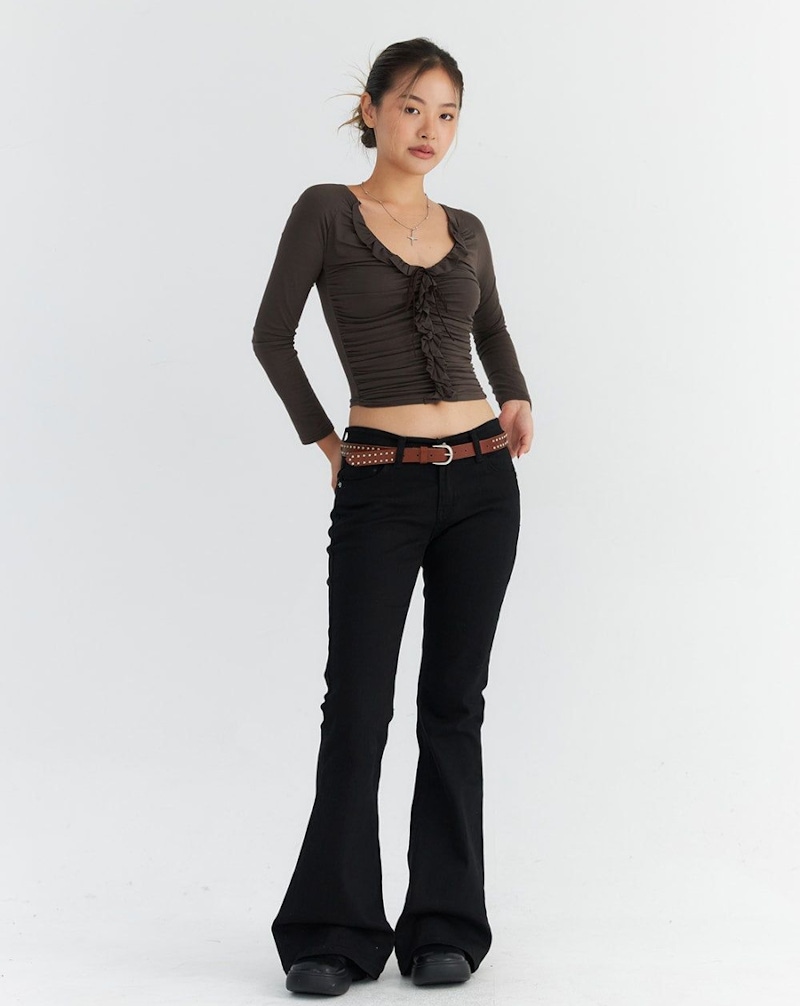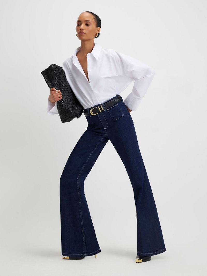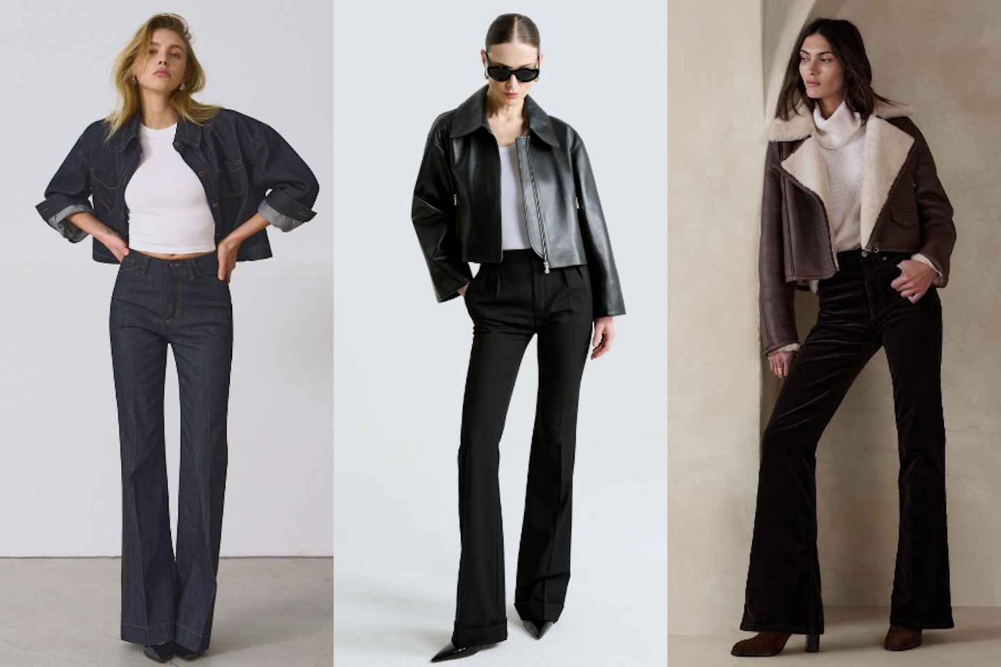 喇叭褲其實是多數身形都能駕馭的時尚單品。從膝蓋向下展開的褲管設計,能夠自然修飾腿部線條,特別適合小腿比較有肉或是腿型不夠直的人,能讓下半身顯得更加纖細、修長。大腿比較豐滿的梨形身材,可以選擇版型略為寬鬆、色調偏深的款式,整體比例會更加俐落;小個子女孩則建議挑選高腰設計,透過拉高腰線來延伸腿部比例,達到顯高的效果。漏斗型身材也能藉由喇叭褲「上窄下寬」的輪廓,強調曲線優勢。搭配時,記得要用合身、短版的上衣維持上下對比,避免造型過於寬鬆。只要掌握這些簡單的原則,喇叭褲就能變成實穿、修飾度極高的百搭褲款囉~