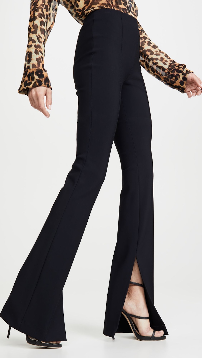 褲腳的開衩設計,是極具巧思的顯高細節。前側或是側邊的開衩,能讓人在走動時微微露出腳背,減少長褲包覆帶來的厚重感;這樣的設計可以自然的拉長腿部線條,引導視線往下延伸,同時還能降低褲腳的存在感。開衩元素讓喇叭褲在保有復古氛圍的同時,多了一點輕盈與俐落,對於想兼顧修飾度與造型感的人來說,開衩褲管絕對是一個實用又時髦的加分選擇。