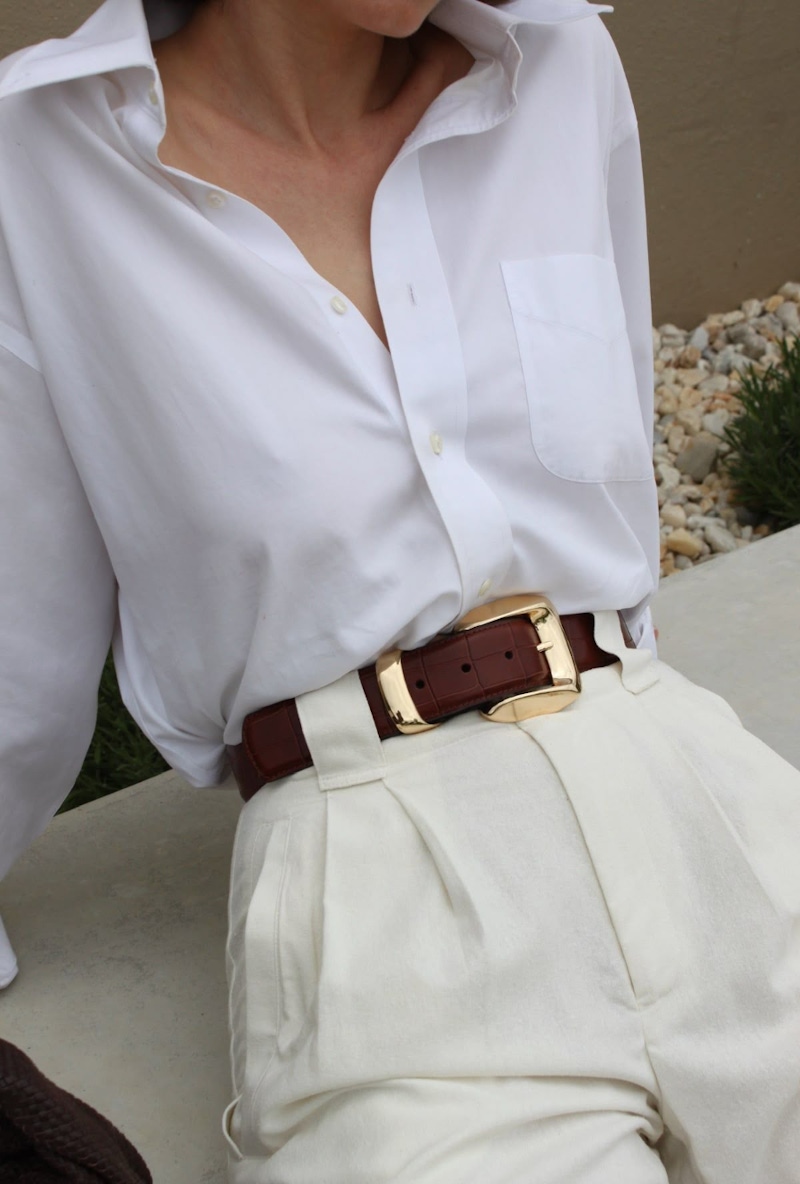 皮帶是實用又百搭的穿搭配件,無論是什麼樣的風格、造型,都能找到合適搭配的款式。在視覺上,皮帶能在腰間劃出明確的分界線,讓上、下半身的比例變得更清楚;尤其是搭配高腰單品時,腰線會被固定在較高的位置上,使腿部線條自然的被拉長。對於身形比較纖細的人而言,皮帶可以增加層次與份量感;對小腹明顯的人來說,則可以固定腰線、讓身形輪廓看起來更俐落。搭配時,最好可以讓皮帶顏色與鞋子的顏色相互呼應,像是:黑鞋配黑皮帶、棕鞋配棕腰帶,整體造型會更協調、更自然。皮帶不只是功能性配件,更是提升穿搭完成度的關鍵細節,只要加入一條簡單的腰帶,就能輕鬆獲得更有重心與層次的時尚造型囉!