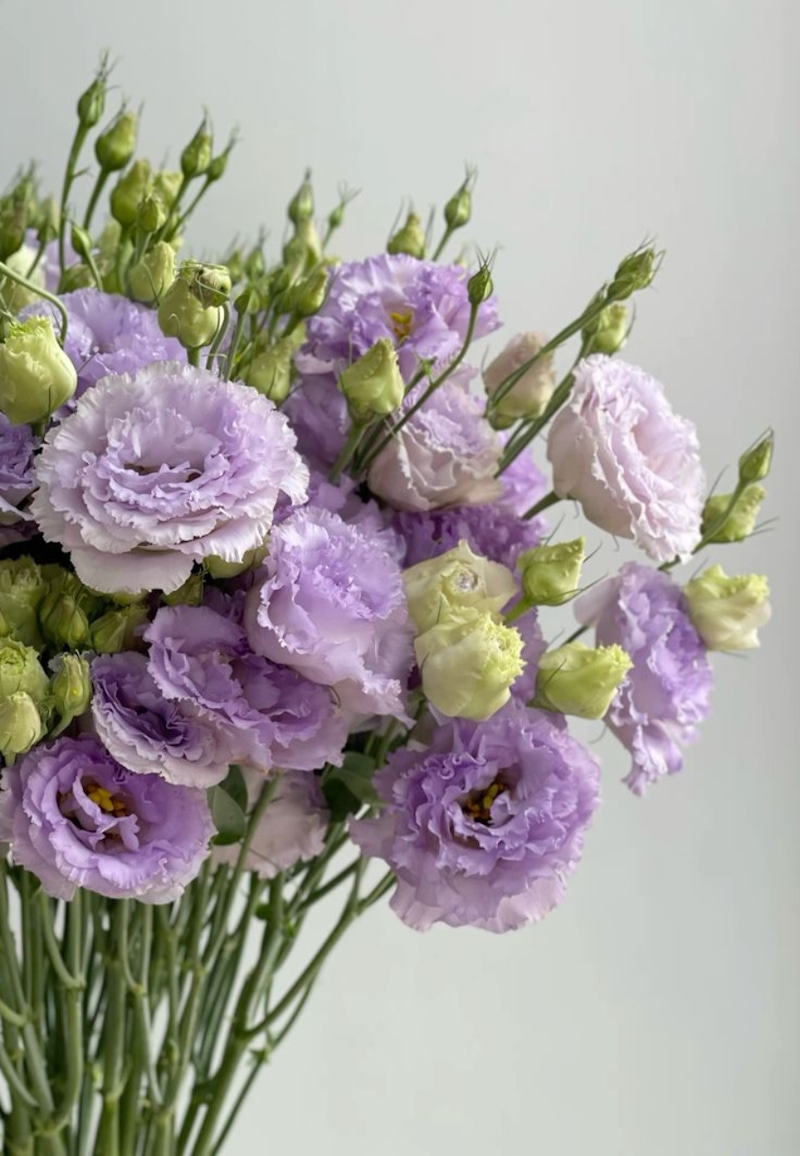洋桔梗的花瓣帶著如絲綢一般柔軟的摺皺感,花語是「永恆不變的愛」。不像玫瑰那樣鮮明、張揚,而是在柔和之中展現出穩定又細膩的力量,就像是把長久相伴的情感收進花瓣裡一樣。洋桔梗所傳遞的是堅定、溫柔的愛,也是在日常生活中依然保有的真摯與依戀;這樣的花禮帶著一種溫和、安定的氛圍,無論是代表「永恆之愛」的白色洋桔梗,還是象徵「無悔的愛」的紫色洋桔梗,都很適合送給陪伴已久、相互信任的另一半,用來慶祝細水長流、安靜卻深刻的愛情。