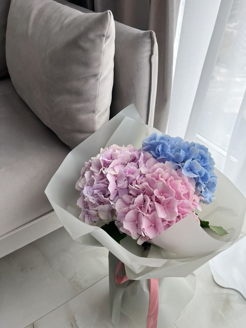 由無數小花簇擁而成的繡球花,花語是「團聚」與「美滿」。飽滿、圓潤的花球造型,就像是把情感與心意層層堆疊在一起,常被視為兩人共同構築未來的象徵。常見的粉紅色、藍色與紫色繡球花,分別象徵著「浪漫、真摯的愛情」「堅毅的愛」以及「親密的關係」,為花束增添豐富的視覺與情感層次。氛圍溫柔又充滿希望,非常適合在感情逐漸穩定、準備邁向人生下一階段時送出,寄予這份情誼能夠開花結果、圓融甜美。
