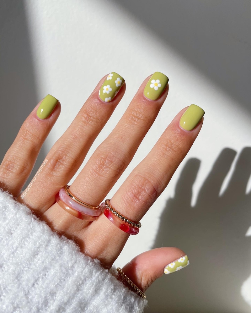 ▲嫩綠色是花卉圖案的理想背景色。圖片來源:Instagram @phoebesummernails