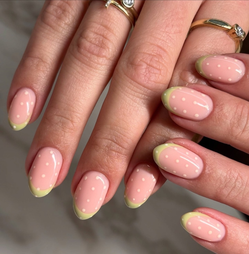 ▲可以在嫩綠色美甲上點綴一些繽紛的小裝飾,增添亮點。圖片來源:Instagram @nailsby.ellietee