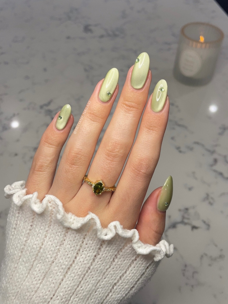 ▲貓眼效果能為嫩綠色美甲注入一抹靈動的春日氣息。圖片來源:Instagram @wereve_nail