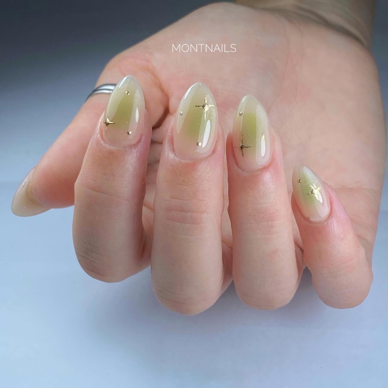 ▲暈染效果是展現嫩綠色層次感的理想方式。圖片來源:Instagram @nail_by_jisu