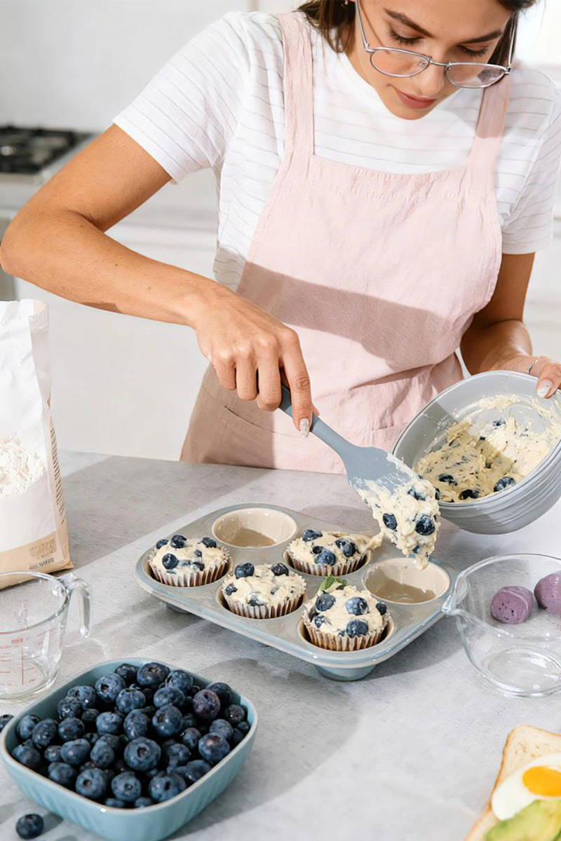 矽膠刮刀的主要作用是讓麵糊混合得更均勻。柔軟、有彈性的刀頭,能夠貼合容器弧度,將沉澱在鋼盆底部的材料翻起,避免局部混合不均。在拌合蛋白霜與麵糊時,刮刀的寬面設計不只能以最少的動作次數完成混合,還能減少過度攪拌造成的「消泡」問題。選購時,建議挑選一體成型的矽膠刮刀,不僅更加耐用,也能避免食材殘留在接縫處導致細菌滋生,使用上更衛生。
