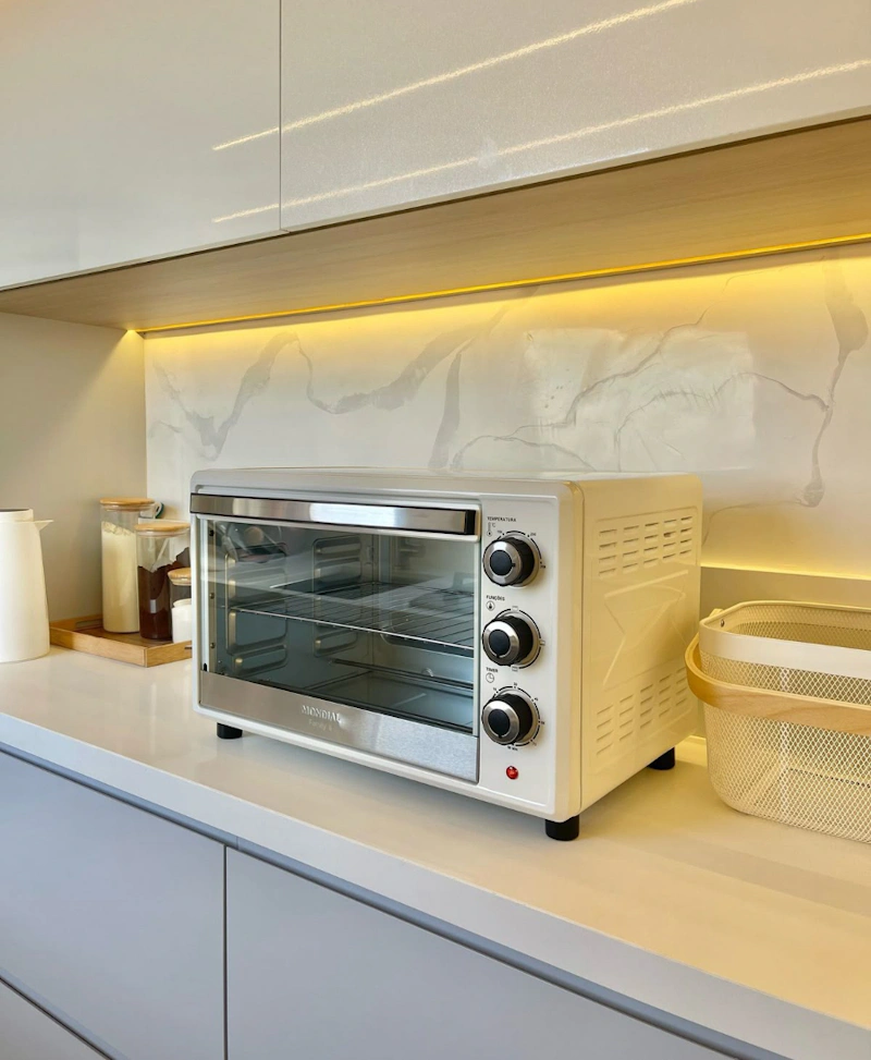 如果你/妳想做的甜點需要烘烤,那烤箱絕對是不可或缺的必備設備!穩定的恆溫系統與上下火的精準控溫,是甜點成功的關鍵;只有在這樣的情況下,才能讓麵糊中的水分汽化、澱粉糊化,蛋白質凝固,確保點心足夠蓬鬆、定型良好。一台溫差小、熱對流均勻的烤箱,就能讓不同位置的甜點受熱程度一致,避免出現外焦內生、上色不均的問題。建議優先選擇具備「熱風對流」功能的烤箱,能有效減少溫差死角,大幅提升烘烤的穩定度。