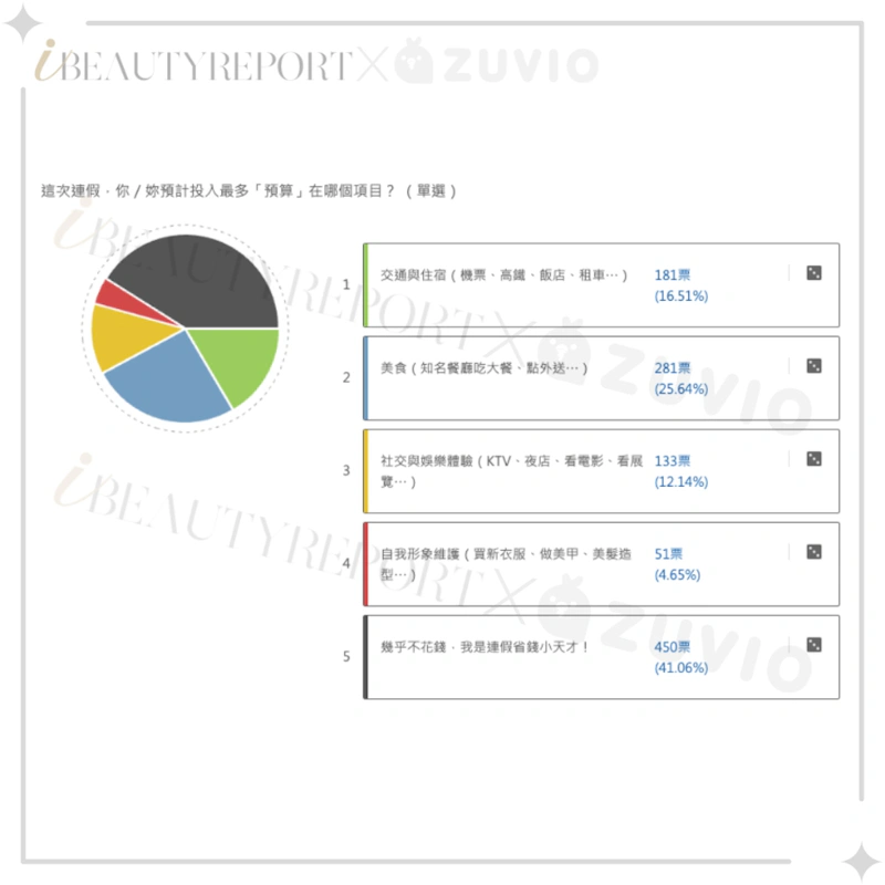 這 281 位參與者更傾向將預算放在「享受美食」上。對他們來說,吃得好不只是滿足口腹之慾,更是一種直接、有效的療癒方式。無論是安排幾間知名餐廳,還是提高每一餐的餐費,把預算放在餐食上,都能使其變成假期中最高品質的享受,絕對能在短時間內替自己好好充電一下!