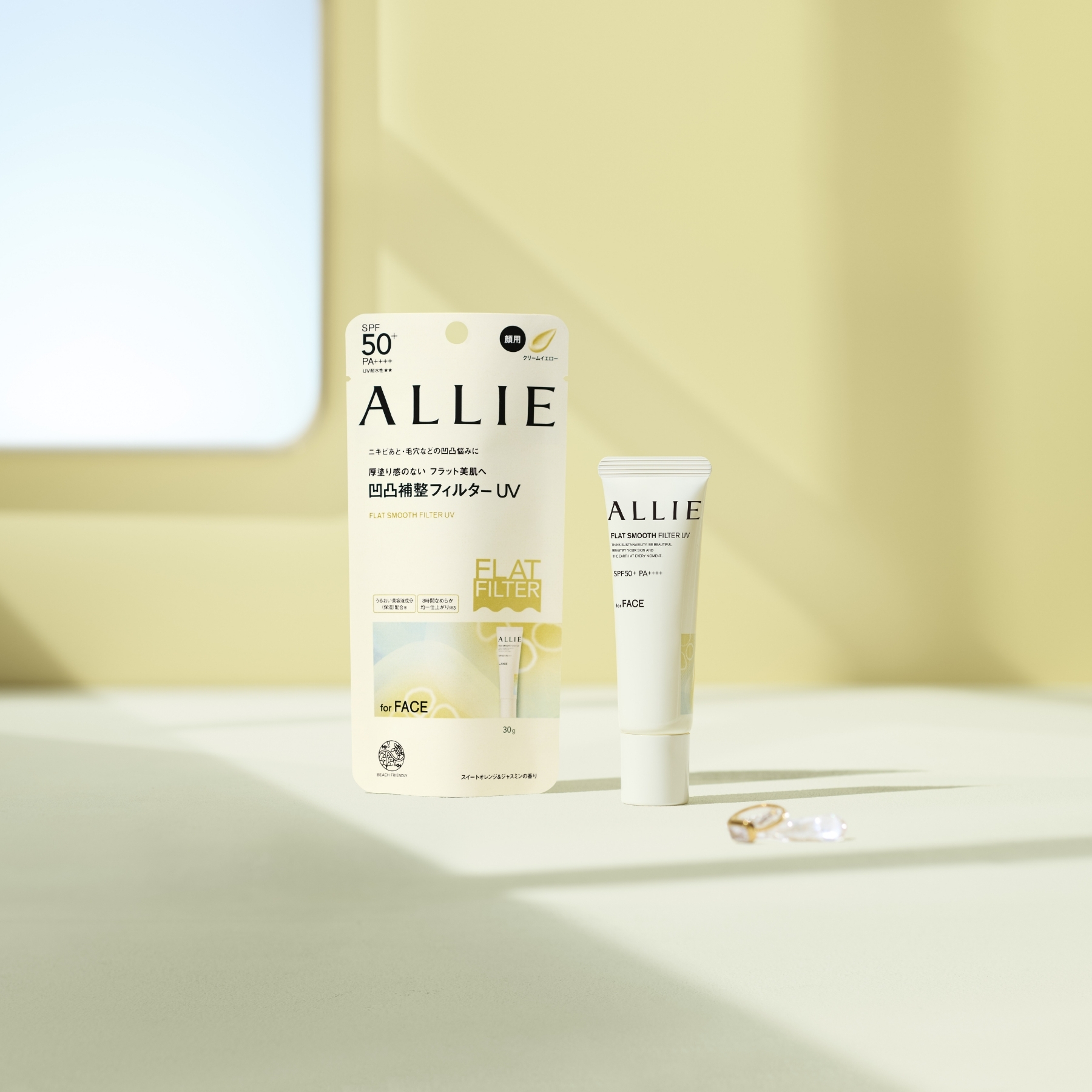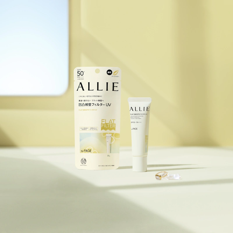 ALLIE防曬家族推出大勢新品—柔焦UV《持采濾鏡修妍UV防曬乳》,擁有最高防護SPF50+ /PA++++不怕曬黑曬老,搭配平滑美肌膜及美容液保濕配方,一抹撫平毛孔,但肌膚依然感受舒適不緊繃;不同於部分毛孔修飾型產品,足量使用後容易使肌膚乾燥、起屑,甚至影響後續妝感,ALLIE柔焦UV質地水感滑順,抹起來輕盈好延展,即使足量塗抹依然能均勻服貼肌膚,後續疊擦底妝也更細緻貼合,呈現平滑自然的美肌妝效。
