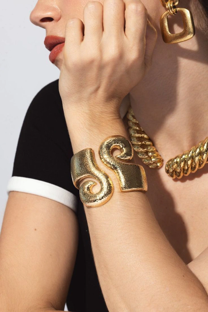 2026 年的飾品趨勢主打「以一擋十」,強調一件單品就能撐起整體造型。無論是寬版、有紋理的手環,還是大面積的造型頸環,都以明確的存在感成為視覺核心。與多層次的疊戴相比,這種風格更專注在單一配件的結構與材質表現,使視覺焦點自然的集中,也讓造型看起來更俐落、更有氣勢,同時保有一種毫不費力的高級感。