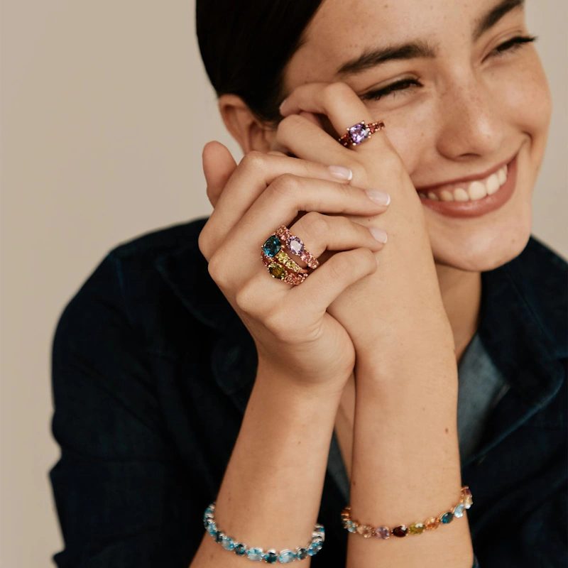 2026 年的珠寶裝飾多以「半透明寶石」與「彩色鋯石」為主,帶出更明亮、更輕快的氛圍。設計上不再侷限於傳統的鑲嵌,而是透過色彩之間的搭配與對比,展現更鮮明的個人風格。尤其是帶有糖果感的通透色澤,還能自然的提亮整體視覺,在不過度張揚的情況下,為造型加入輕盈又有質感的亮點。