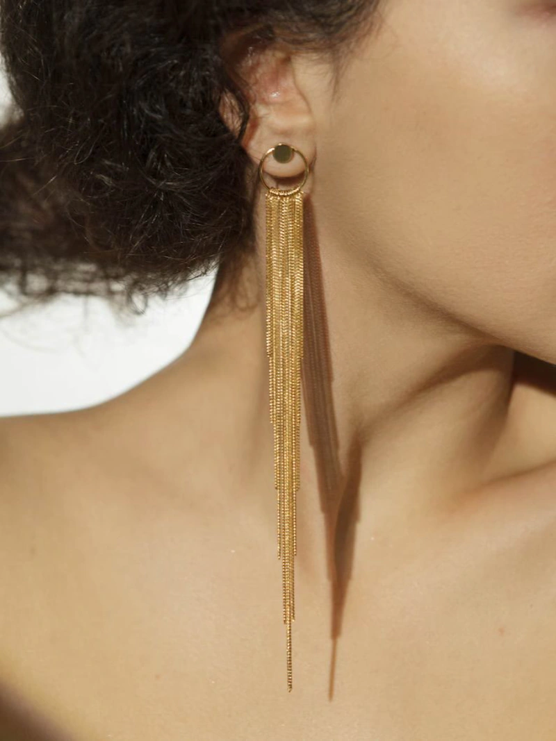 由金屬細鍊、絲線組成的流蘇設計,在今年重新成為時尚焦點,強調帶有「動態感」的美學。隨著配戴者的動作,流蘇會自然的擺動,形成細微的光影變化,讓造型多了一點層次與節奏感。無論是耳環還是項鍊墜飾,這類設計都能為偏靜態的穿搭注入一點靈動氣息,在行走間展現出輕盈、流暢又迷人的時尚魅力。