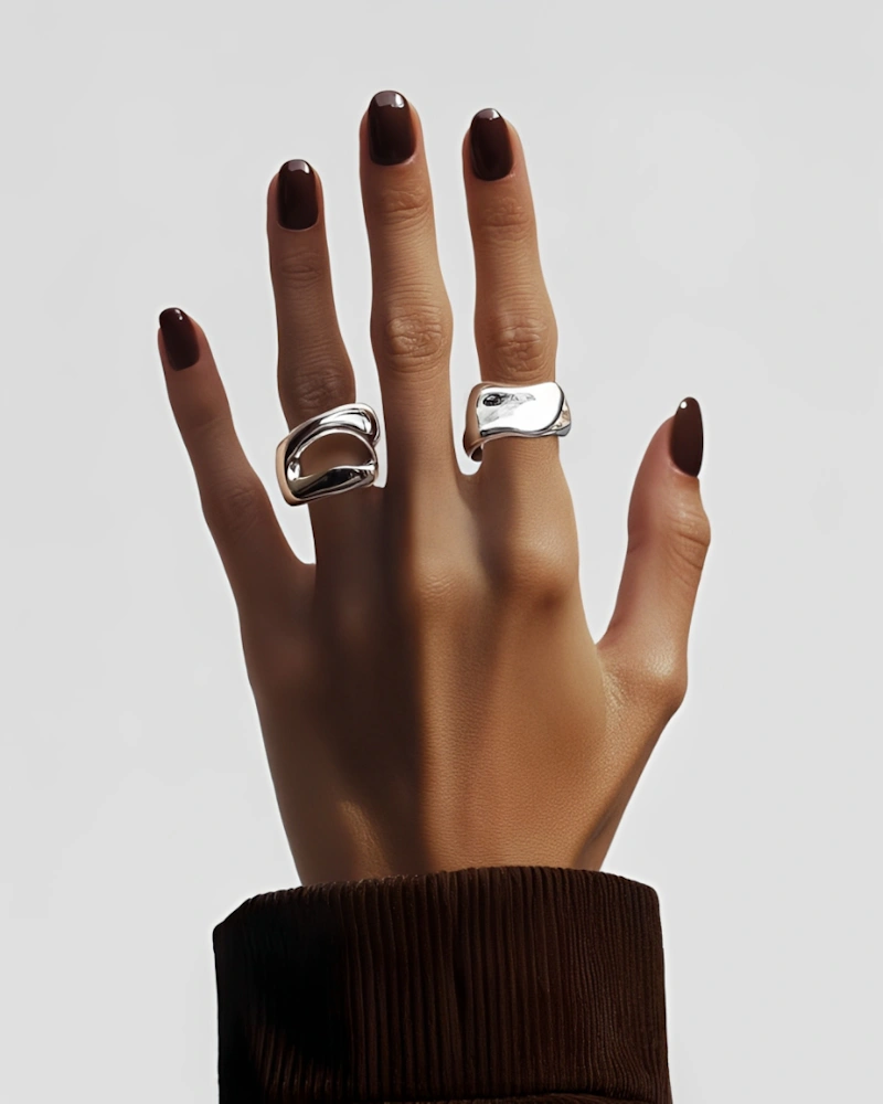 這類飾品打破了傳統珠寶的對稱、規整,轉而強調有如流動液體、現代雕塑般的線條。不規則的曲面與拋光處理,讓金屬飾品呈現出更立體的光澤與層次,也多了幾分建築感與動態感。在穿搭上,它不只是一種配件,還更像是一件可以隨身攜帶的微型藝術品,在簡約的輪廓中加入鮮明的存在感,讓風格變得更俐落、更有型。
