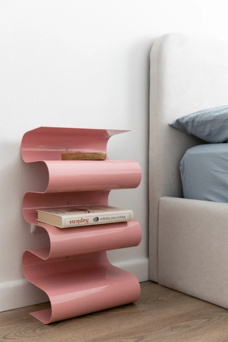 現代感層架是兼具收納功能與裝飾性的實用佈置小物,選擇透明壓克力、金屬材質,更能有效提升質感,帶來極佳的視覺呈現效果。同時,透過「高低差」的擺放方式,還能將珍藏的書籍、香氛、蒐藏品轉化為「展品」,使層架變成房間中的「策展區」,在收納各類生活物品的同時,也成為佈置美學的一環。