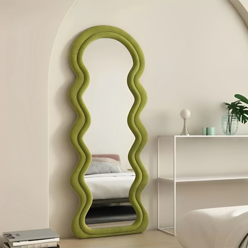 造型鏡子除了是擴大室內視覺空間的「魔法」工具,更是極為實用的裝飾品與產出「美照」的道具。選擇可愛、造型不規則的波浪鏡、雲朵鏡,能夠打破空間的沉悶感,並大幅增加趣味性與時尚度;而鏡面的反射不僅能夠增加室內的採光亮度,其獨特的邊框設計更能成為牆上的視覺亮點,讓日常的更衣、化妝過程變得充滿質感,也是一個產出美照的道具!