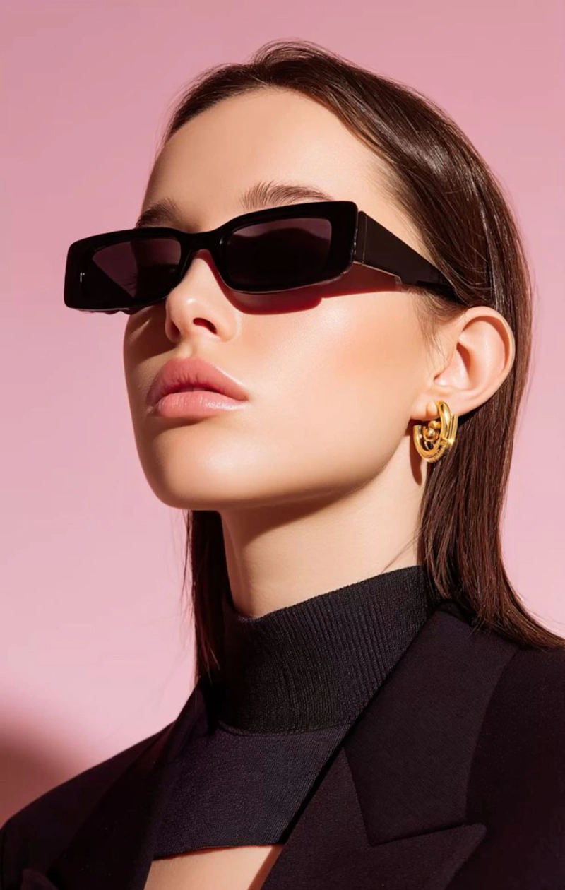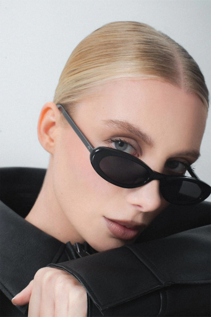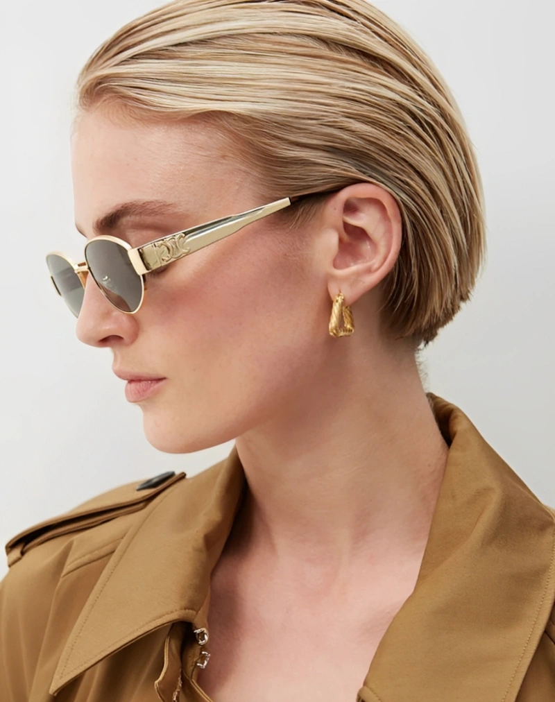髮型是墨鏡的延伸,兩者的搭配極為關鍵。俐落的短髮、率性的貼頭皮丸子頭,適合搭配大框、幾何感強的墨鏡,能夠進一步強化臉部輪廓的現代感;而蓬鬆的捲髮、隨性的層次剪,則更適合細緻、輕盈的細金屬框,以免在視覺上顯得厚重。只要掌握「一繁一簡」的核心原則,讓髮絲與鏡框線條自然的銜接,就能營造出極具高級感的和諧氛圍,也能讓造型變得更俐落、更有層次。