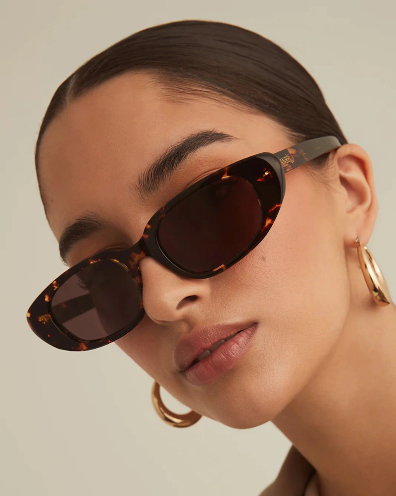 挑選墨鏡時,最重要的是掌握「臉型」與「鏡框形狀」之間的互補關係。可以先觀察自己的臉型,圓臉適合有稜角的方框、幾何形設計,能夠拉長臉部線條;方臉可以透過圓框、橢圓框柔化輪廓;長臉推薦選擇寬版設計來平衡比例;而鵝蛋臉則相對百搭,幾乎什麼墨鏡都能駕馭。鏡框大小也同樣重要,鏡框的寬度可以略寬於臉部兩側最寬處,並讓眉毛自然的落在鏡框上緣附近,整體會更協調。而墨鏡的顏色可以依照自己的膚色來選擇,膚色偏暖的人適合棕色、玳瑁色或金色的鏡框,膚色比較白皙的話,則可以挑選銀色、黑色、透明灰的款式。不過,因為實際試戴永遠都會比單看圖片更準確,同一個款式在不同人臉上的感覺可能會完全不同,所以有機會一定要親自戴上去感受,才能找到真正適合自己的命定墨鏡!