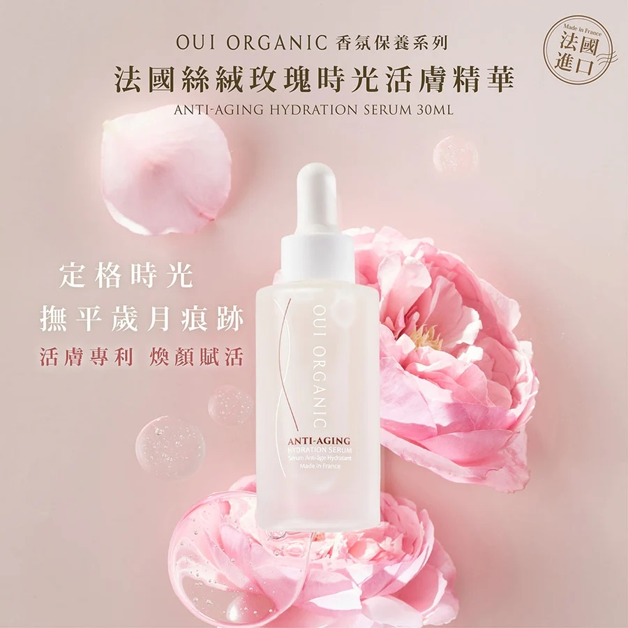 體驗商品:30名(Oui Organic唯有機法國絲絨玫瑰時光活膚精華30ml/價值NT$1,970)