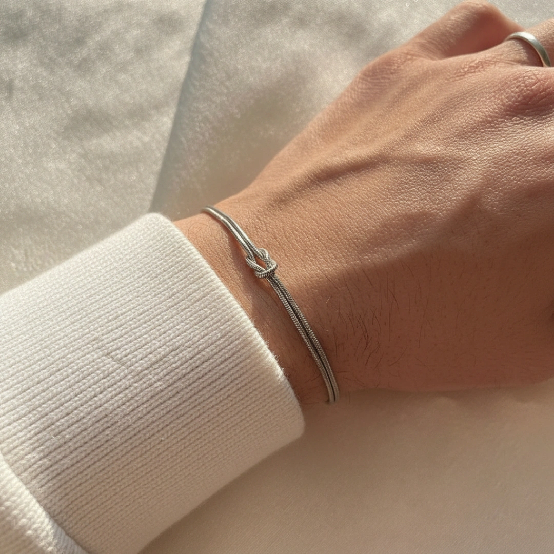 - 簡約無飾設計: 全鍊僅保留同心結主體與調節零件,避免勾扯衣物,適合追求極簡穿搭與純粹質感的都會伴侶。