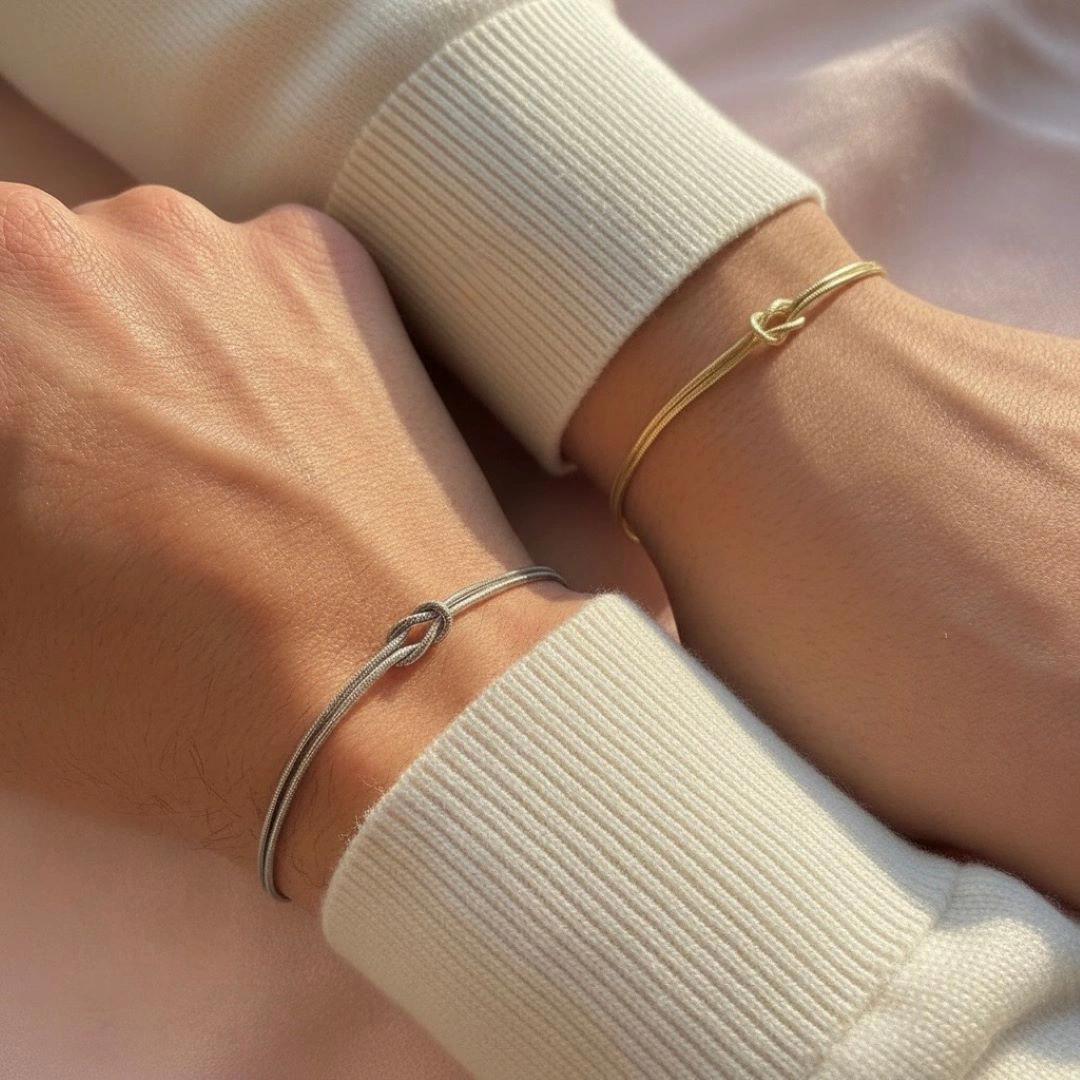 - 剛柔並濟: 金屬代表堅韌,結繩造型代表柔軟,象徵伴侶在面對挑戰時展現的包容與堅毅力量。