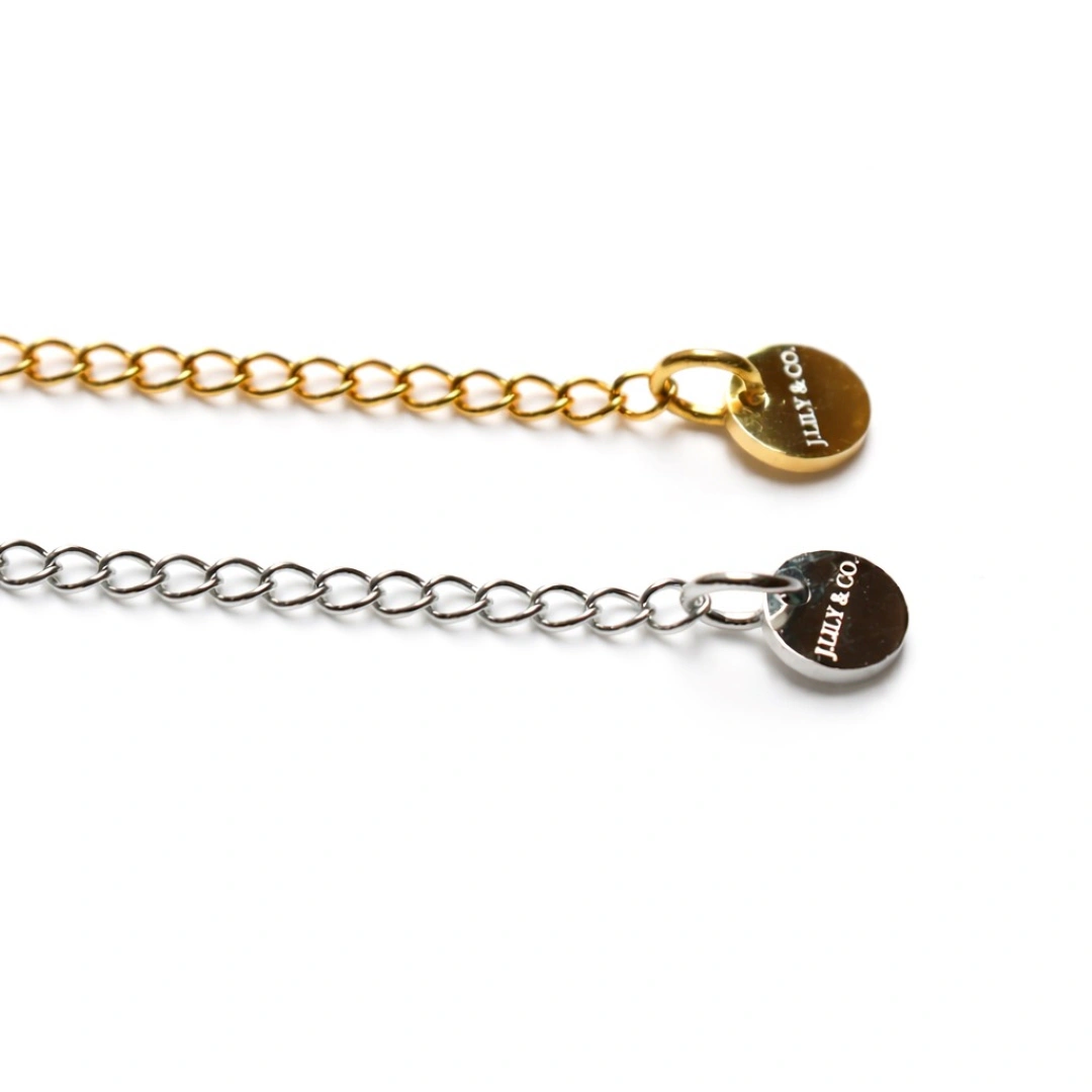 - 品牌鎖片: 鍊尾附有 J.LILY & CO. 圓形金色/銀色品牌鎖片。