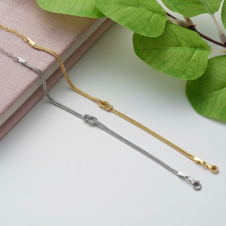 - 簡約無飾設計: 全鍊僅保留同心結主體與調節零件,避免勾扯衣物,適合追求極簡穿搭與純粹質感的都會伴侶。
