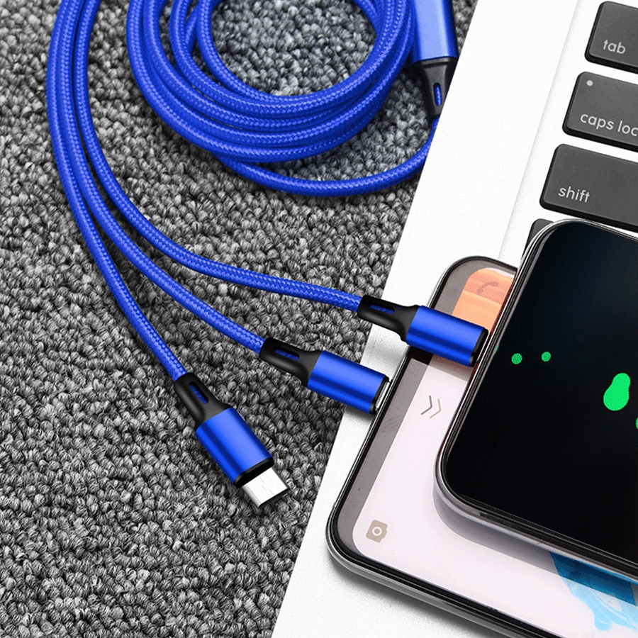 尼龍編織一拖三數據線多頭2A快充三合一充電線