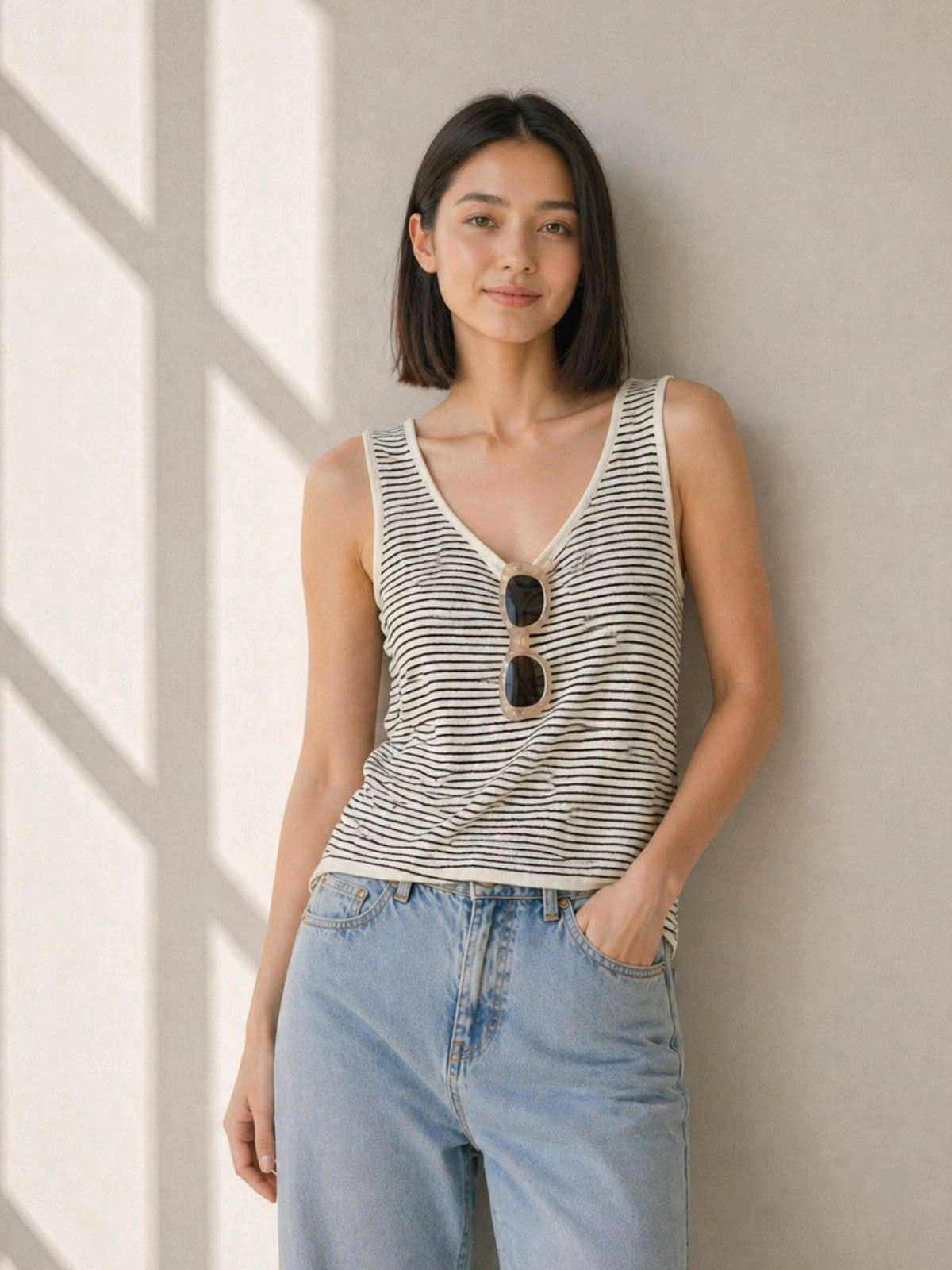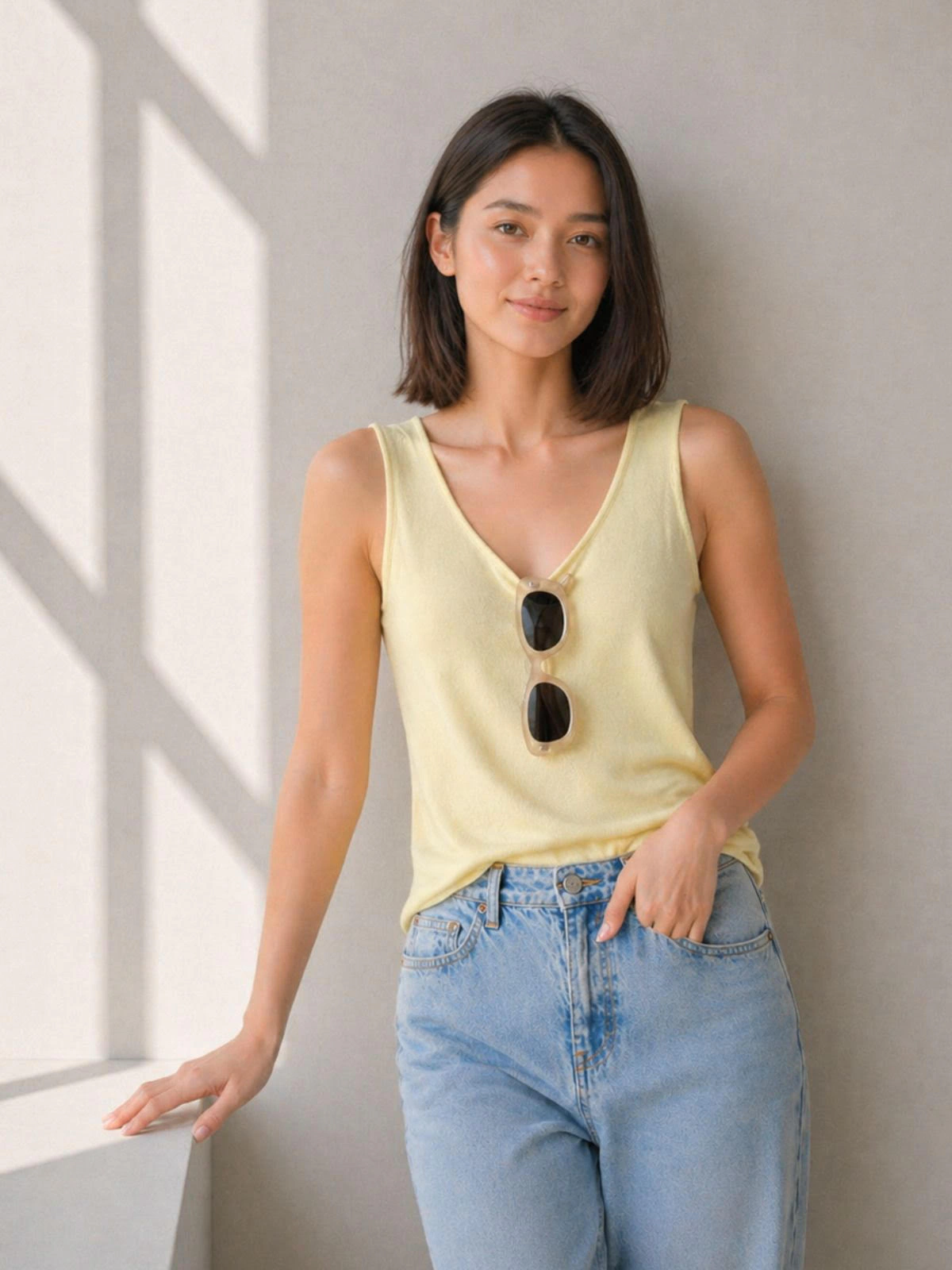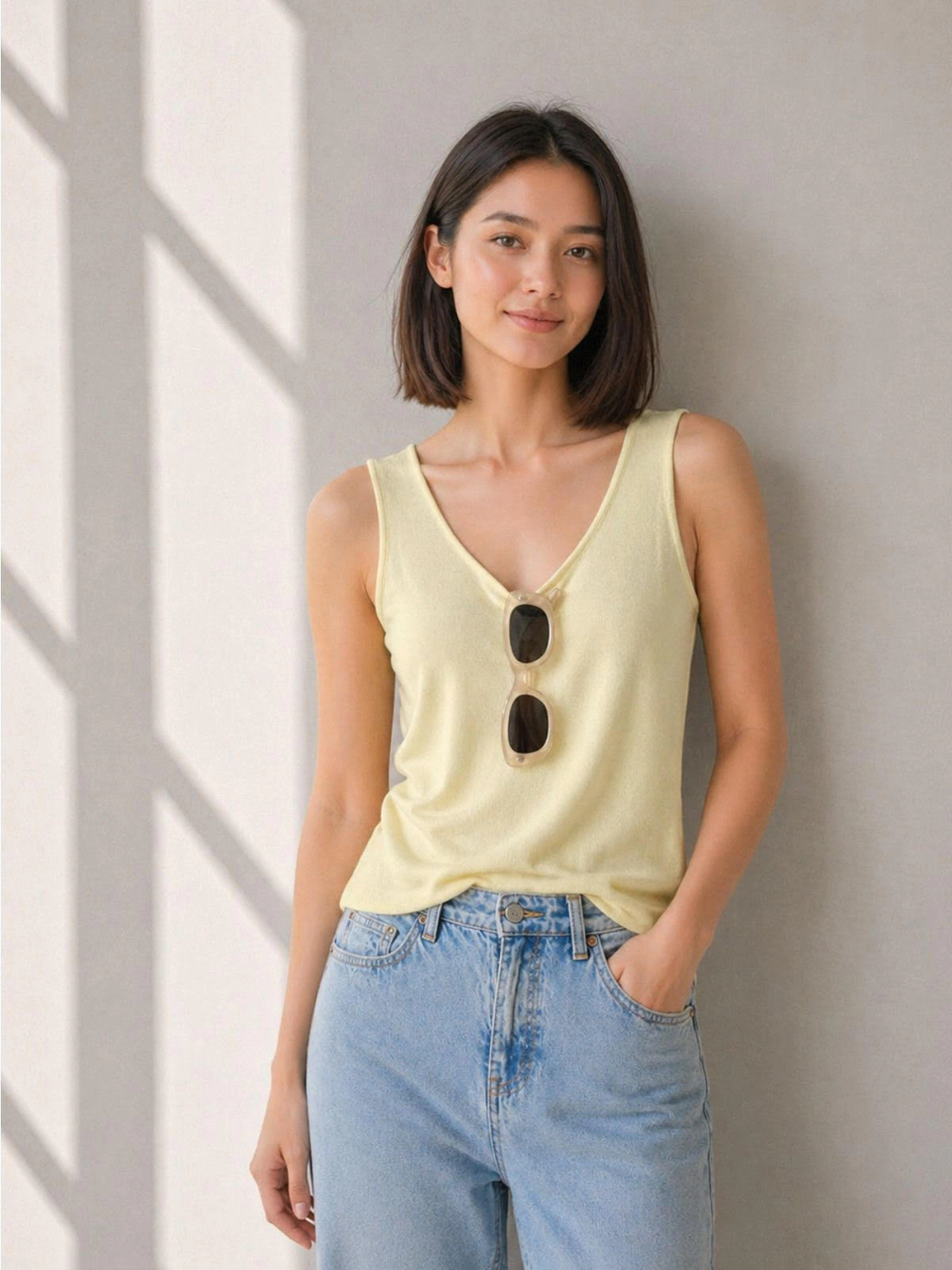 背心剪裁,呈現俐落感